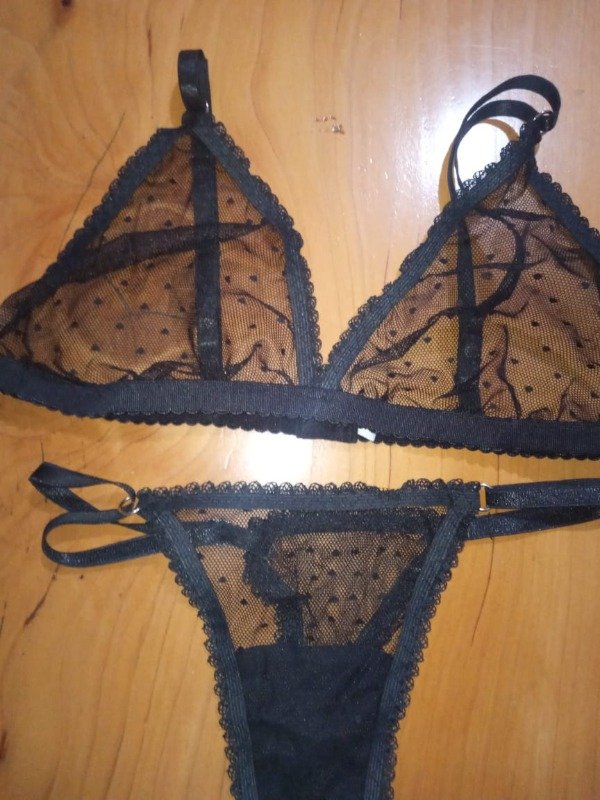Conjunto Basico con puntitos corpiño bralette y tangaless regulable